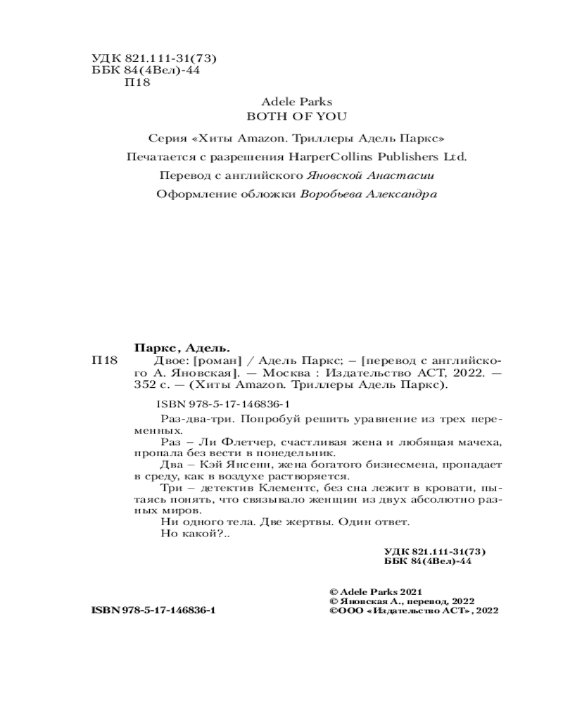 Серия: Хиты Amazon. Триллеры Адель Паркс Раз-два-три. Попробуй решить уравнение из трех переменных. |