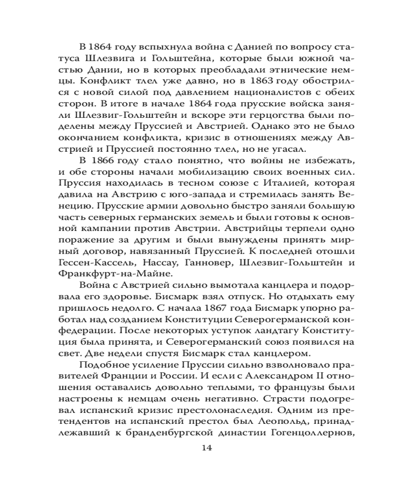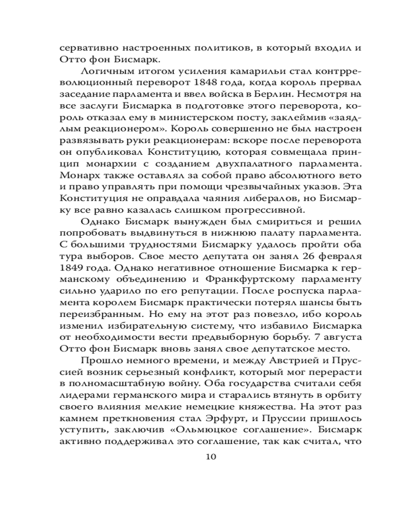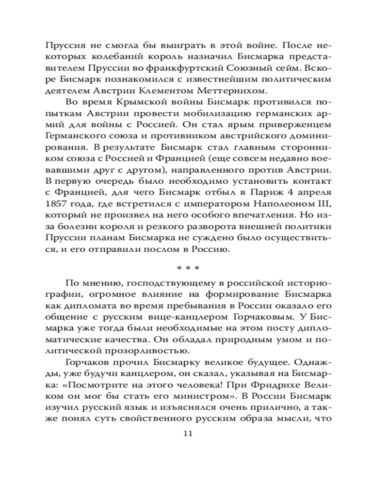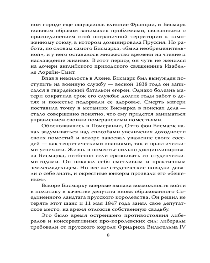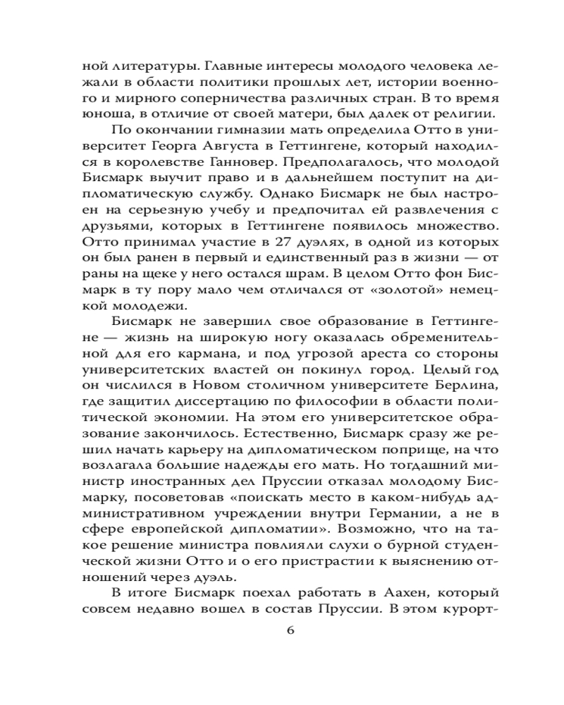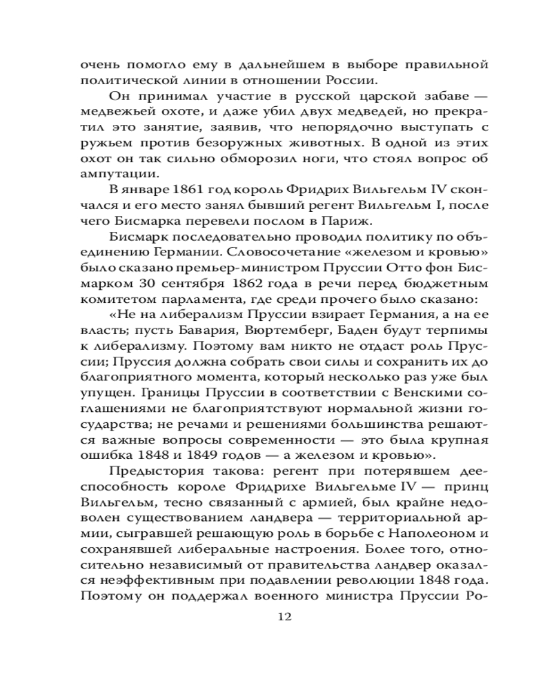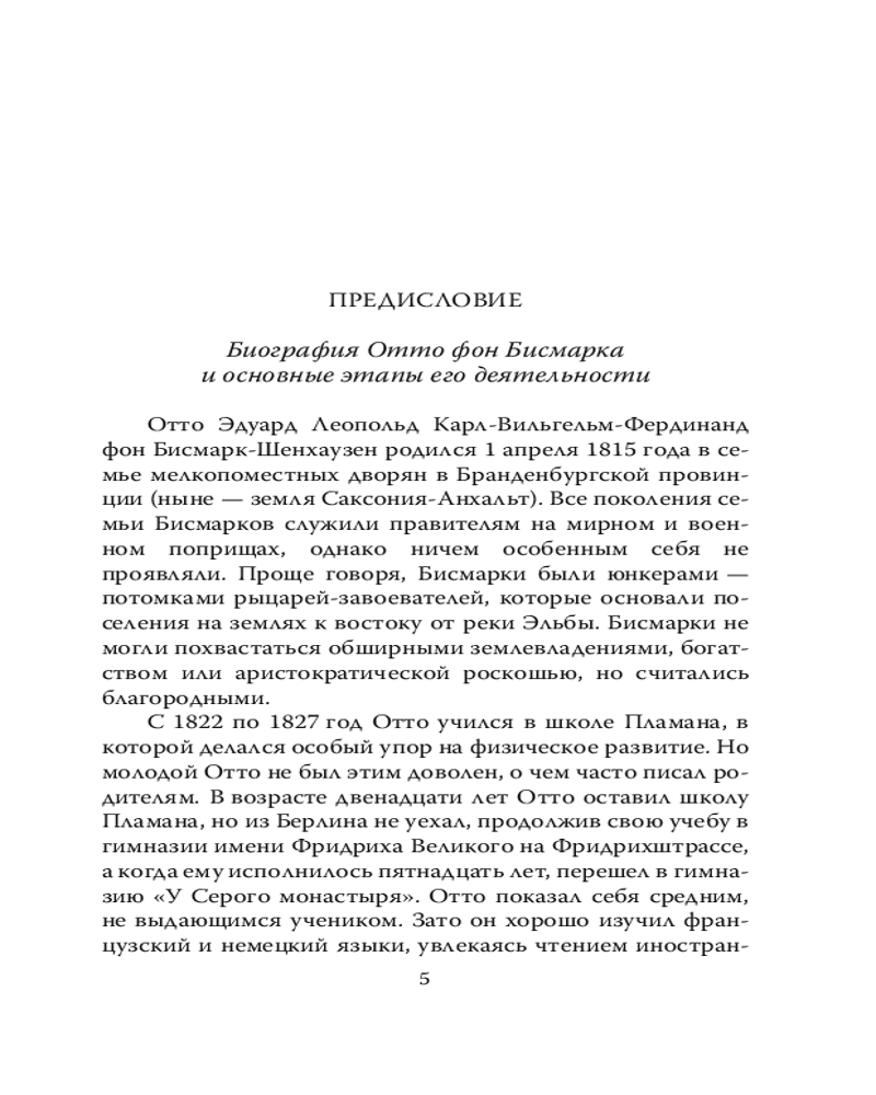 Серия: Мысли великих Отто фон Бисмарк — одна из легендарных личностей в мировой истории. «Железный канцлер» Германии, он создал Германскую империю (II Рейх) и оказал огромное влияние на международную политику не только в XIX, но и в XX веке. Бисмарк прекрасно разбирался во внешней политике, хорошо знал состояние европейских государств и России (он долго жил в Петербурге, являясь послом Пруссии в России). |