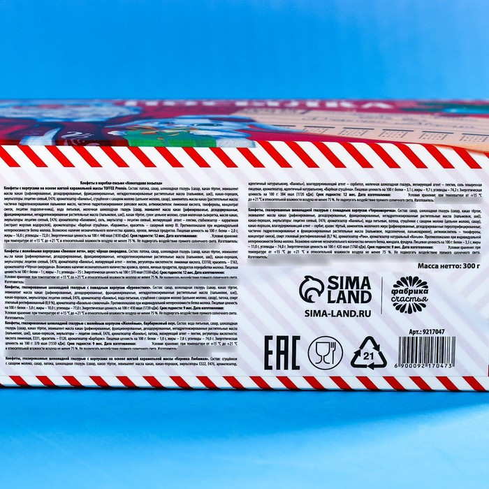Конфеты, глазированные шоколадной глазурью с помадным корпусом «Буревестник»: сахар, шоколадная глазурь (сахар, какао тёртое, эквивалент масла какао (рафинированные, дезодорированные, фракционированные, негидрогенизированные растительные масла (пальмовое, ши)), какао-порошок, эмульгаторы: лецитин соевый, Е476, ароматизатор «Ваниль»), вода питьевая, сгущённое с сахаром молоко (цельное молоко, сахар), патока, спирт этиловый ректификованный (0,9 %), ароматизатор «Ванильно-сливочный». Противопоказано при индивидуальной непереносимости белка молока.