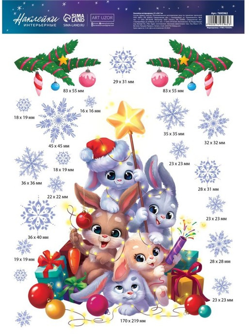 Арт Узор Наклейка интерьерная «Зайки»В данный момент этот товар отсутствует в продаже. Возможно, у нас найдется аналогичный или похожий товар здесь. Серия: Символ года 2023 Новогодние украшения помогут украсить дом к предстоящим праздникам. С помощью этих украшений вы сможете оживить интерьер по своему вкусу. Новогодние украшения всегда несут в себе волшебство и красоту праздника. Создайте в своем доме атмосферу тепла, веселья и радости. |