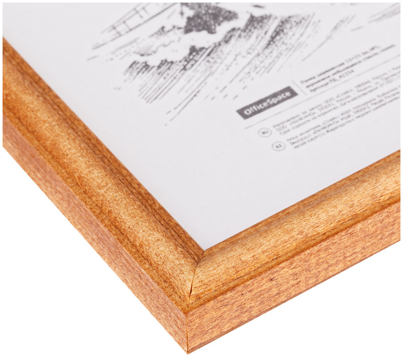 Рамка OfficeSpace из натурального дерева используется для оформления фотографий, дипломов, сертификатов, постеров, картин и любых других изображений. Подходит как для вертикального, так и для горизонтального размещения. Имеется опорная ножка для установки рамки на столе. Защитная вставка из пластика. Задняя панель из переплетного картона. Рамка упакована в термоусадочную пленку.