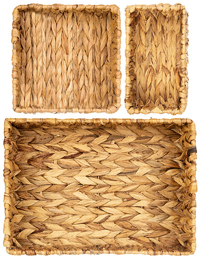 Набор состоит из 3-х плетеных корзин разного размера. Корзины можно разместить на кухне, в прихожей, гостиной и любых других комнатах. Корзинки можно использовать для организации хранения и создания декоративных композиций в интерьере. Подойдут для хранения одежды (шапок, перчаток, белья, носков), канцелярии, косметики, рукоделия (пряжи, вязания) и других мелочей. Коробки имеют прочные стенки и дно. Их можно использовать для переноски вещей. Интерьерные плетеные корзинки помогут создать систему для хранения вещей в едином стиле или гардеробную систему в вашей прихожей! |