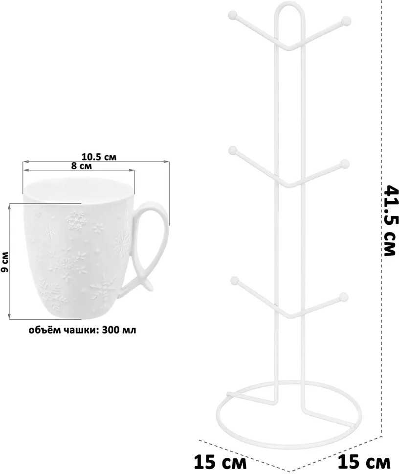Набор серии «Снежинки» состоит из шести кружек на металлической подставке. Такой набор поможет провести множество уютных чаепитий. Кружки выполнены из высококачественного фарфора и украшены рельефными узорами. Они привнесут атмосферу зимнего волшебства с хлопьями снега, морозными узорами и танцующими кружевными льдинками.