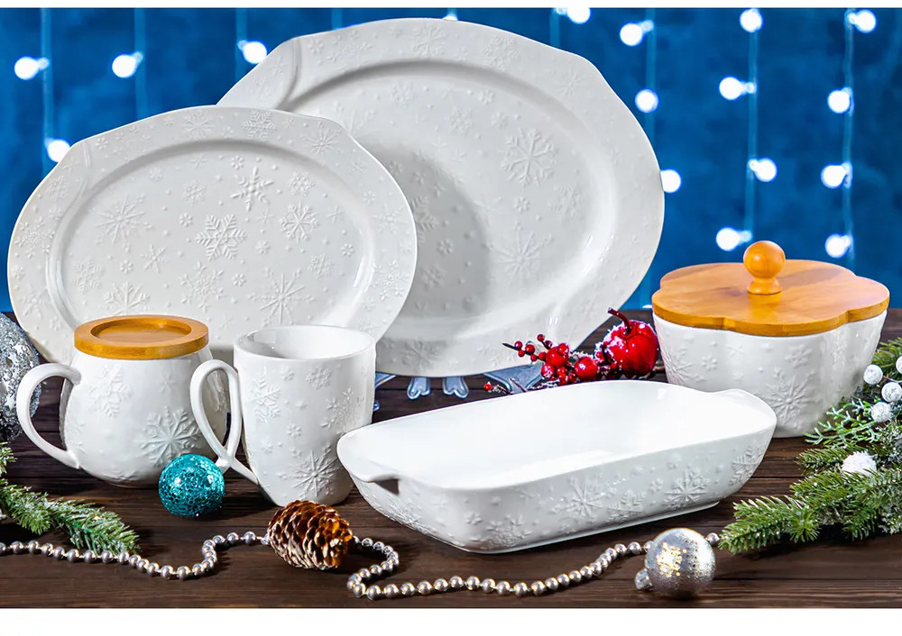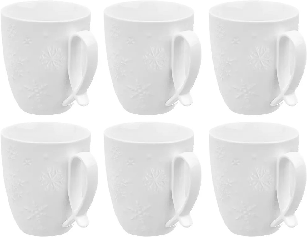 Кружки подходят для использования в микроволновой печи и посудомоечной машине. Поставляются в стильных картонных упаковках. Набор из серии посуды «Снежинки» сможет стать настоящим украшением кухни или приятным подарком для ваших родных и близких!