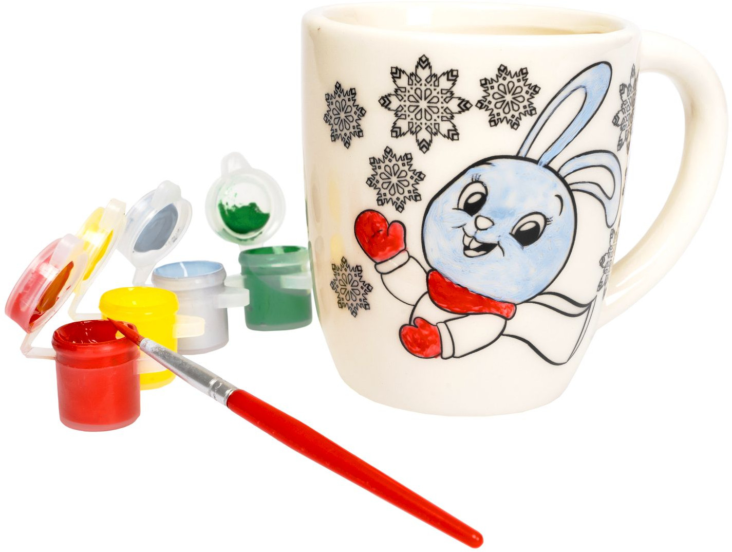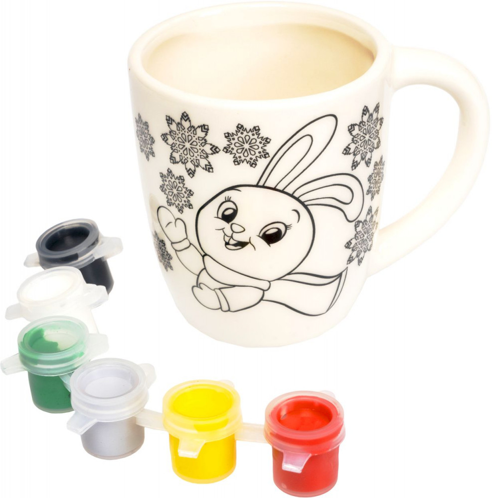 Раскрась веселого зайчика на кружке своими руками! Керамическая кружка с рисунком кролика от Bondibon для раскрашивания поможет детям развить воображение, чувство цвета и мелкую моторику маленьких пальчиков. Давно известно и доказано, что развитие мелкой моторики у детей тесно связано с развитием речи. Совместить приятное с полезным — что может быть лучше!