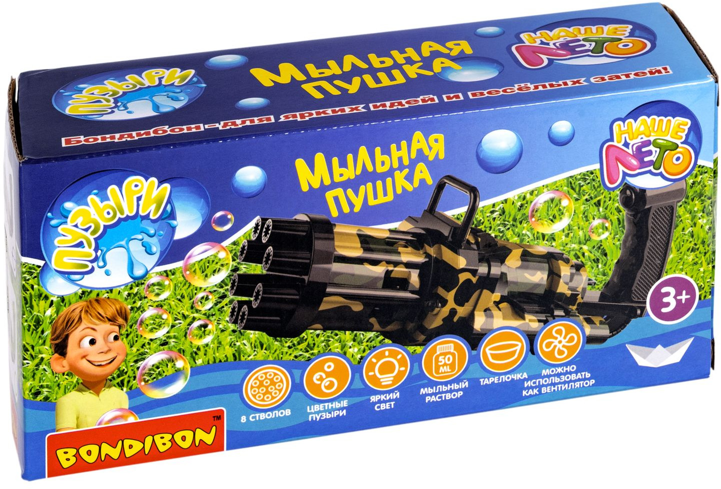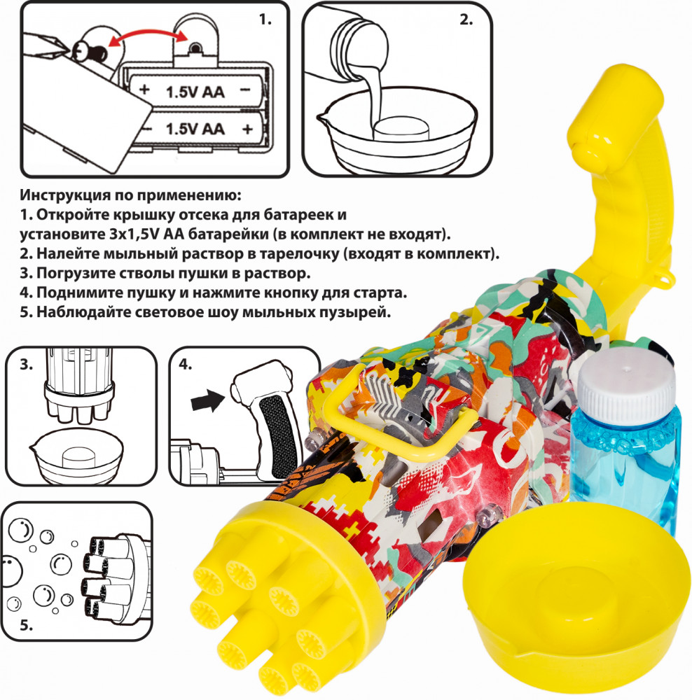 Генератор мыльных пузырей от Bondibon — «Супер пушка», светится, пускает цветные пузыри мощным потоком и дарит море радости! Мыльные пузыри — одна из любимых игрушек для детей. Что может быть веселее, чем устроить мыльное шоу с пузырями или перестрелки из водных пистолетов на улице, даче или в бассейне? Дети не только развлекаются, в процессе такой игры у ребенка совершенствуется зрительное восприятие, развиваются социальные навыки и зрительно-моторная координация. |
