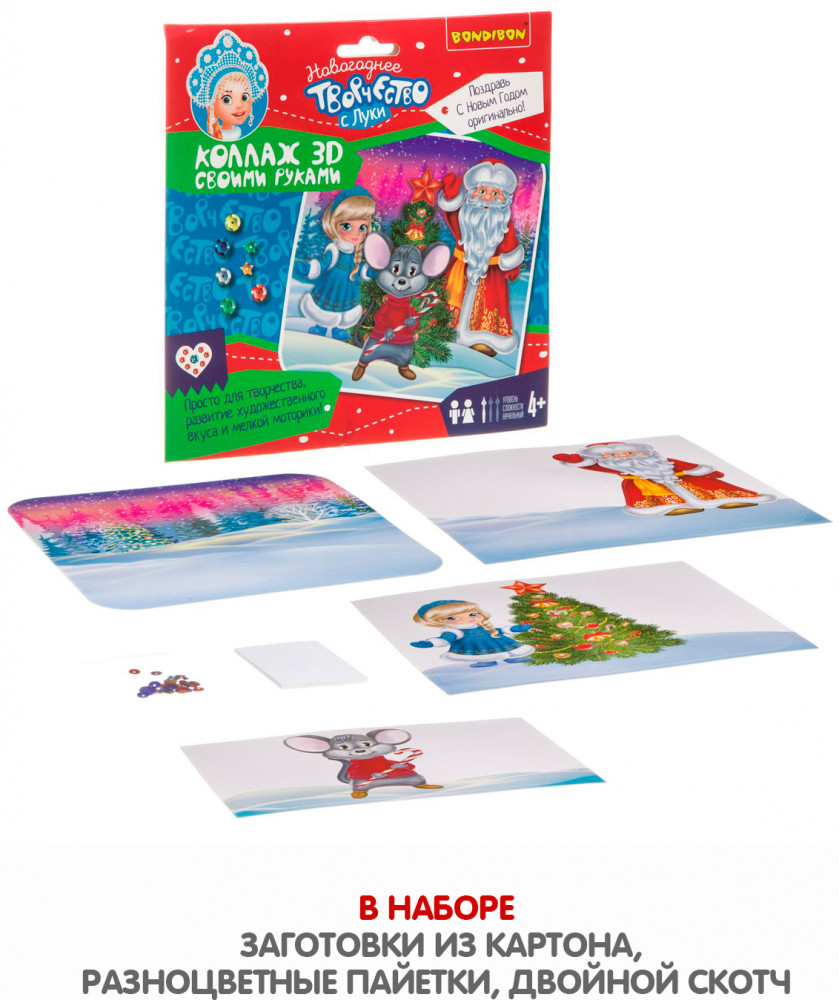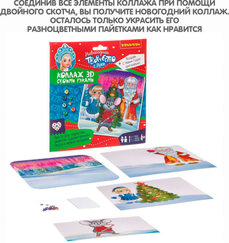 💳 Оплатить за товар можно при получении 🇰🇿 Есть бесплатная доставка по Казахстану 🎁 Копите бонусы с каждой покупки Серия: Творчество с Луки Набор для творчества — создание оригинального подарка своими руками. Соединив все элементы коллажа при помощи двойного скотча, вы получите новогодний коллаж. Осталось только украсить его разноцветными пайетками как нравится. |