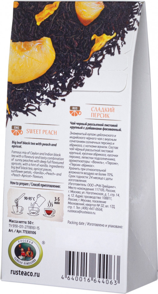 FruTea Чай черный «Сладкий персик»В данный момент этот товар отсутствует в продаже. Возможно, у нас найдется аналогичный или похожий товар здесь. Знаменитый купаж цейлонского и индийского черного чая с вкусным сочетанием солнечных персика и абрикоса, с нотками ванили. |