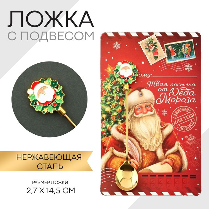 Семейные традиции Ложка с формовой ручкой «Твоя посылка от Деда Мороза»-25% +46