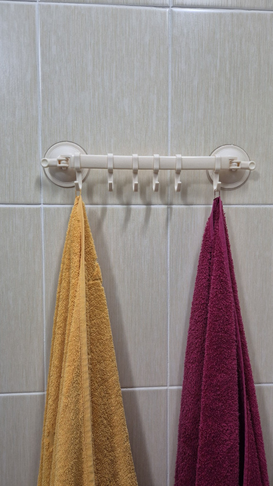 Не понравился, не держаться присоски.Надо придумать,как приспособить на кухне,чтоб полотенца и прихваты повесить.