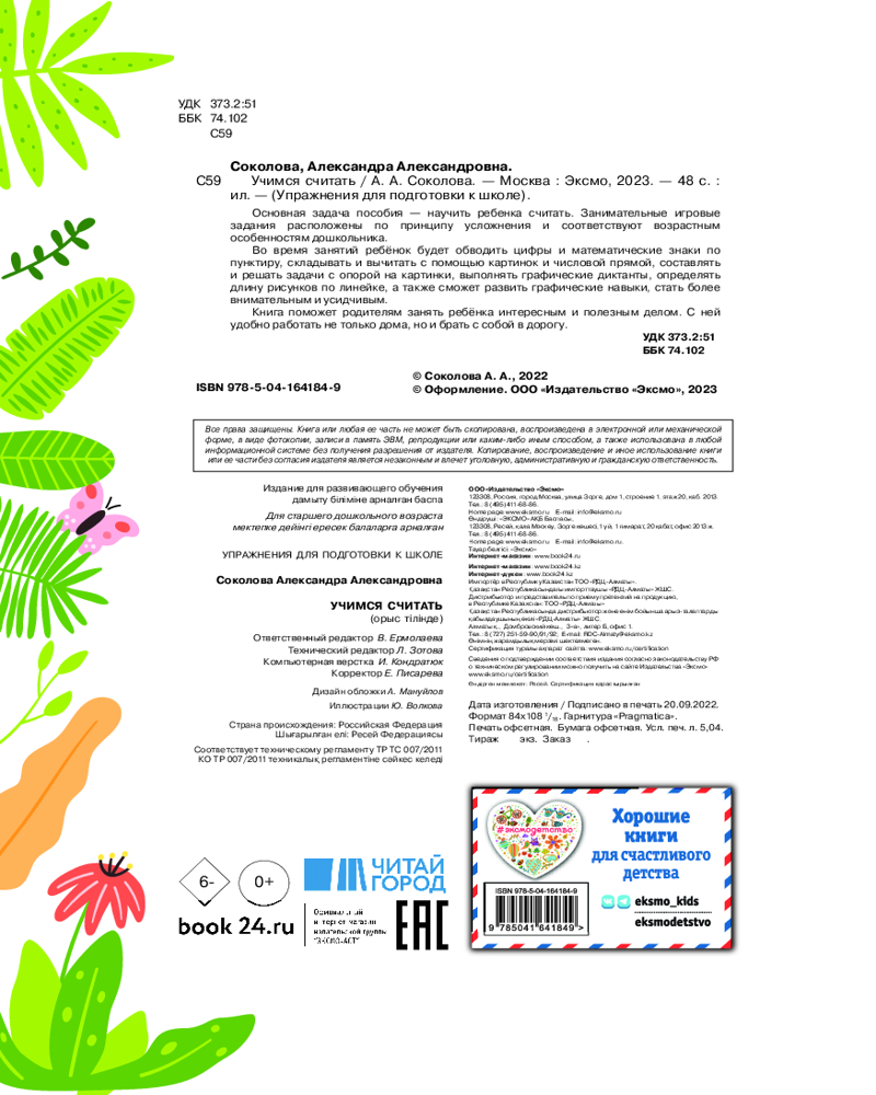 Серия: Упражнения для подготовки к школе (обложка) Очень важно не только научить ребенка считать, но и применять этот навык при решении примеров и задач. |