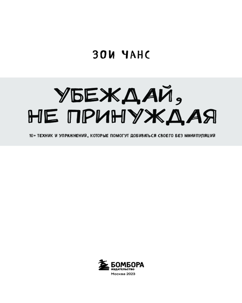 Убеждай, не принуждая. 10+ техник и упражнений, которые помогут добиваться своего без манипуляцийВ данный момент этот товар отсутствует в продаже. Возможно, у нас найдется аналогичный или похожий товар здесь. Серия: Психология. Плюс 1 победа (новое оформление, обложка) Прекратите манипулировать, узнайте, как работают законы работы поведенческой психологии, и тогда вы сможете построить эффективные отношения. Так считает Зои Чанс, маркетолог и исследователь по вопросам коммуникации. |