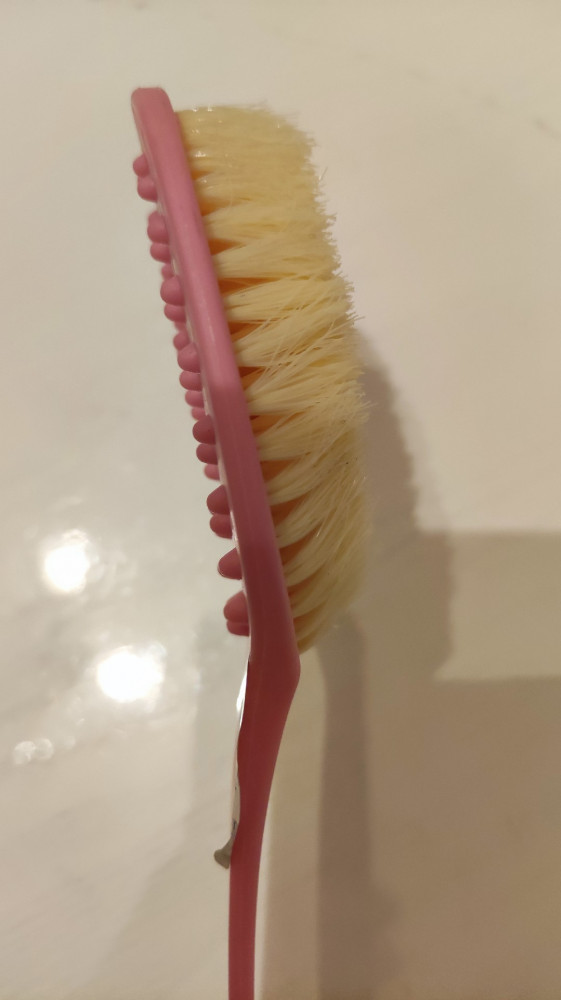 В описании сказано, что щетина мягкая.Но на мой вкус щетина слишком жесткая, а ручка слишком мягкая, хотелось бы наоборот.Я не особо неженка, но спину этим тереть неприятно. К тому же щеточка слишком маленькая.