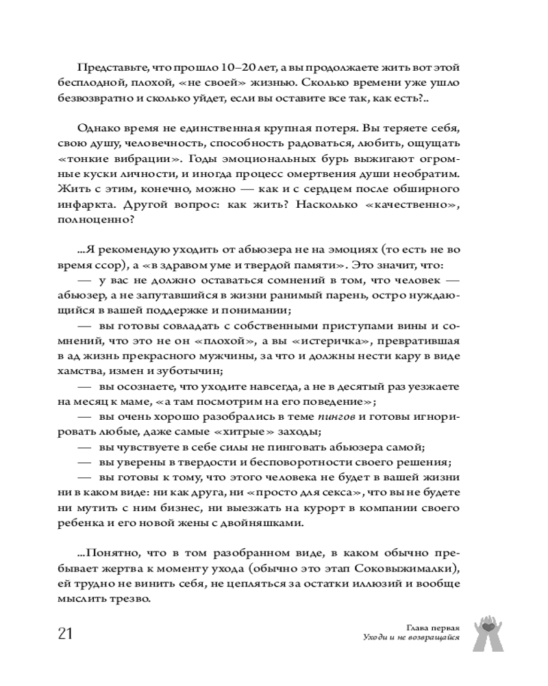 В данный момент этот товар отсутствует в продаже. Возможно, у нас найдется аналогичный или похожий товар здесь. Серия: Психология для жизни ...Вы страдали месяцы и годы, надеясь на улучшение отношений. Чего только не перепробовали, но стало только хуже. К счастью, в тумане абсурда вы уже начали различать спасительные очертания двери...