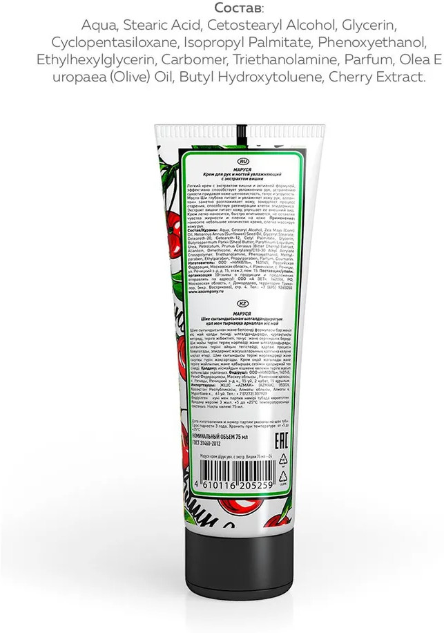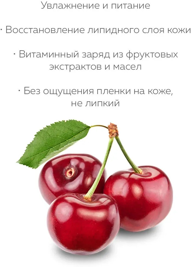 Приятная текстура, нежный аромат вишни, быстро впитывается и увлажняет. Советую! 🍒