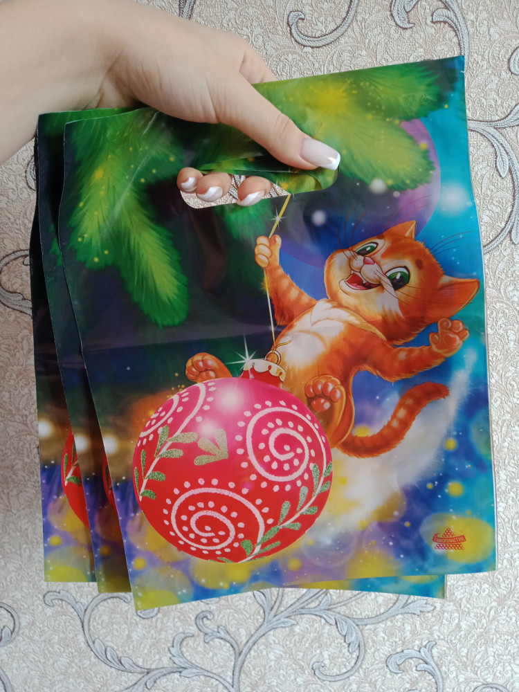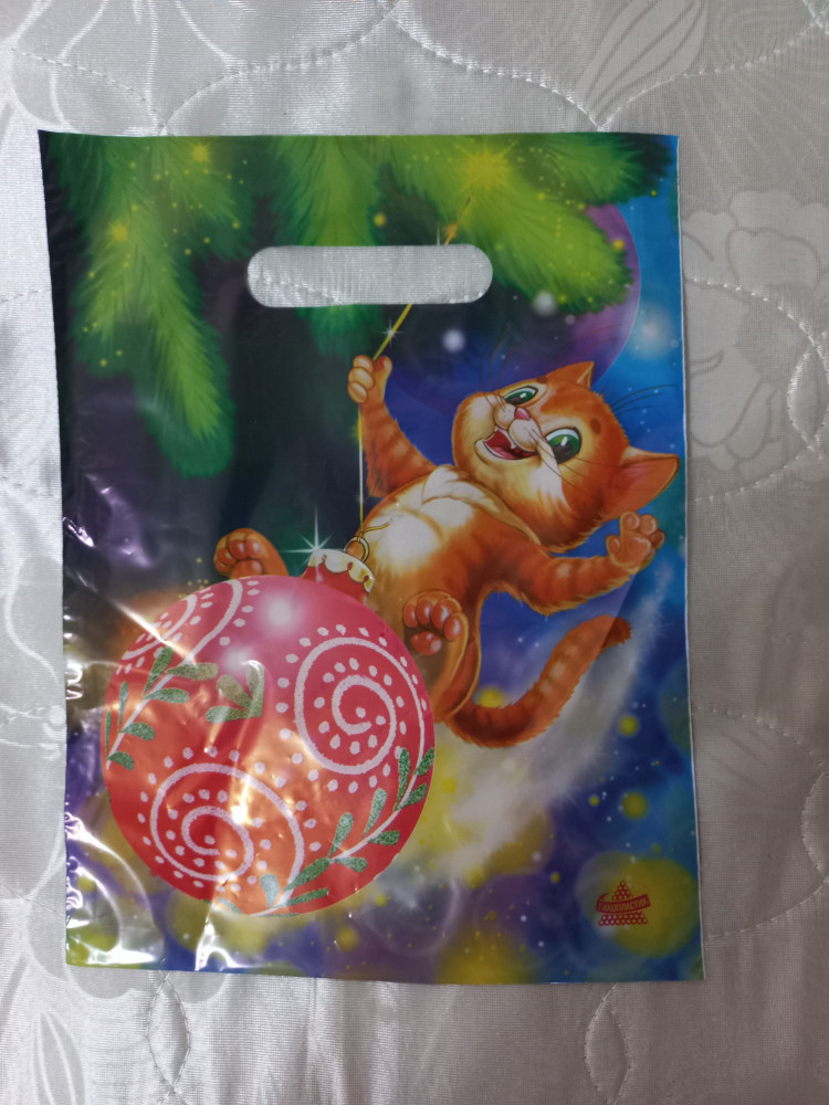 Пакет тонкий, расцветка яркая, красивая, брали для подарков на НГ, для небольшого подарка само то