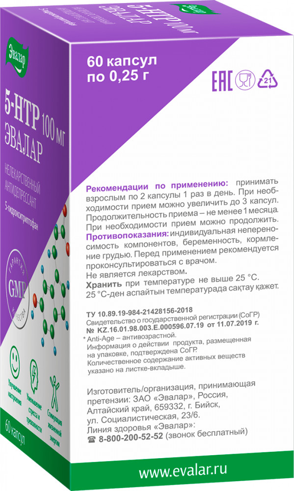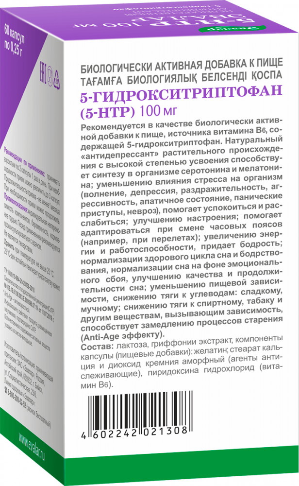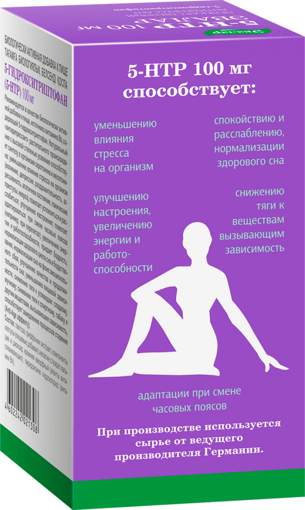 5-гидрокситриптофан (5-НТР) от компании Эвалар — натуральный нелекарственный «антидепрессант», не вызывающий привыкания. В его составе — 5-гидрокситриптофан из стандартизированного немецкого экстракта гриффонии, усиленный витамином В6. |