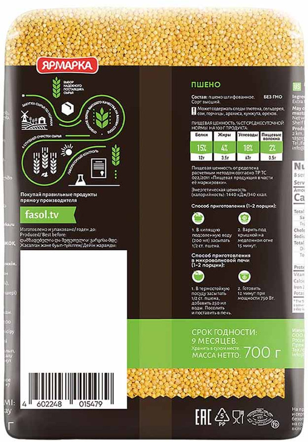 Ярмарка ПшеноВ данный момент этот товар отсутствует в продаже. Возможно, у нас найдется аналогичный или похожий товар здесь. Если Вы решите пшено купить, цена на него не будет высокой. Зато количество полезных веществ в нем очень велико: отличается высоким содержанием белка по сравнению с другими крупами, богат витаминами группы В, PP, Е, K, железом, цинком, магнием и фосфором. Регулярное употребление в пищу пшенной каши будет и хорошей альтернативой ежедневной медитации. Ученые отметили, что «золотая крупа», как ее называли наши предки, благотворно влияет на психику человека и укрепляет нервную систему. Она помогает восстановиться организму после приема антибиотиков, так как хорошо выводит токсины и продукты распада. |