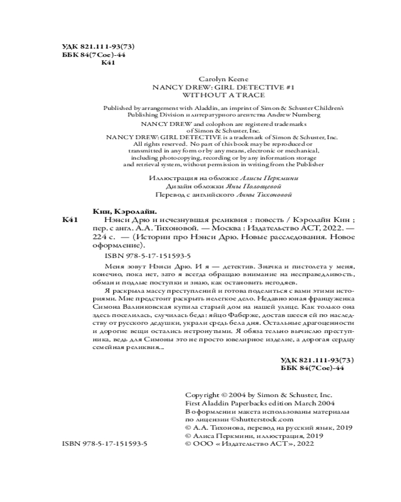 | Нэнси Дрю и исчезнувшая реликвия Кэролайн Кин