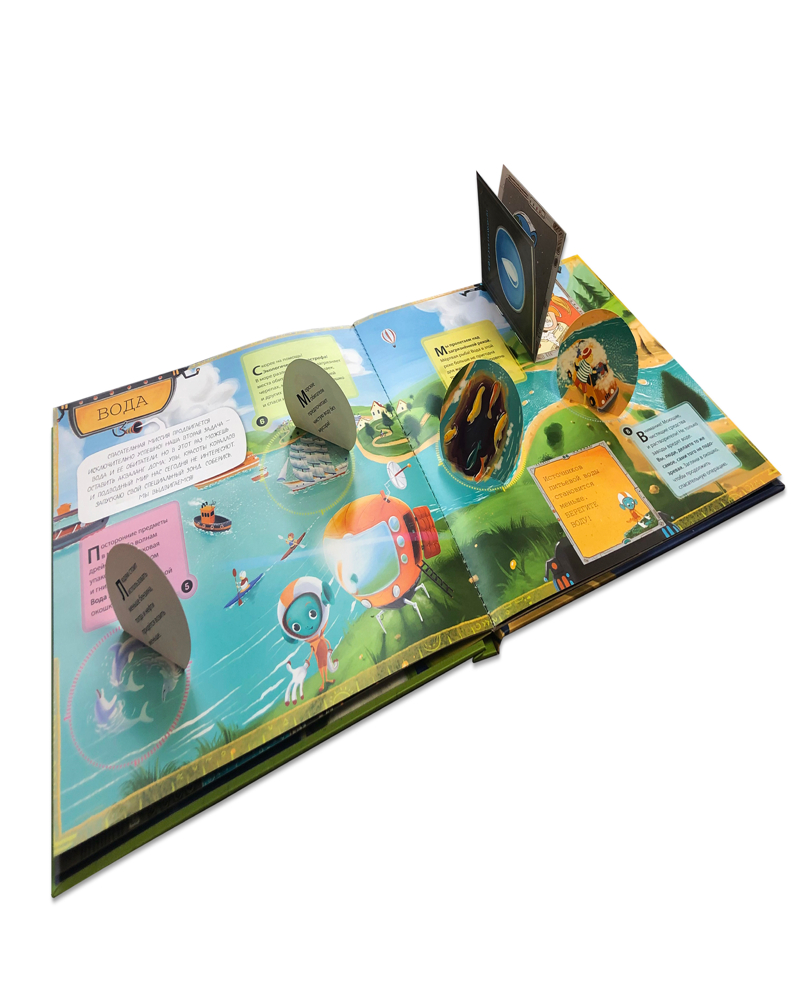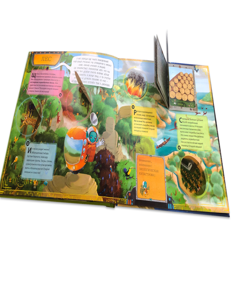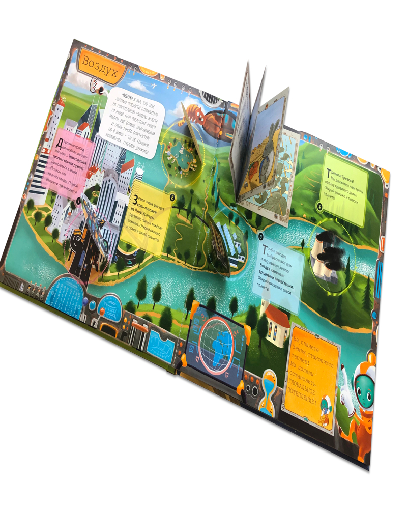 Способы решения этих и многих других экологических проблем мы найдём с помощью множества интерактивных элементов внутри книги. Открой окошко — и измени мир!