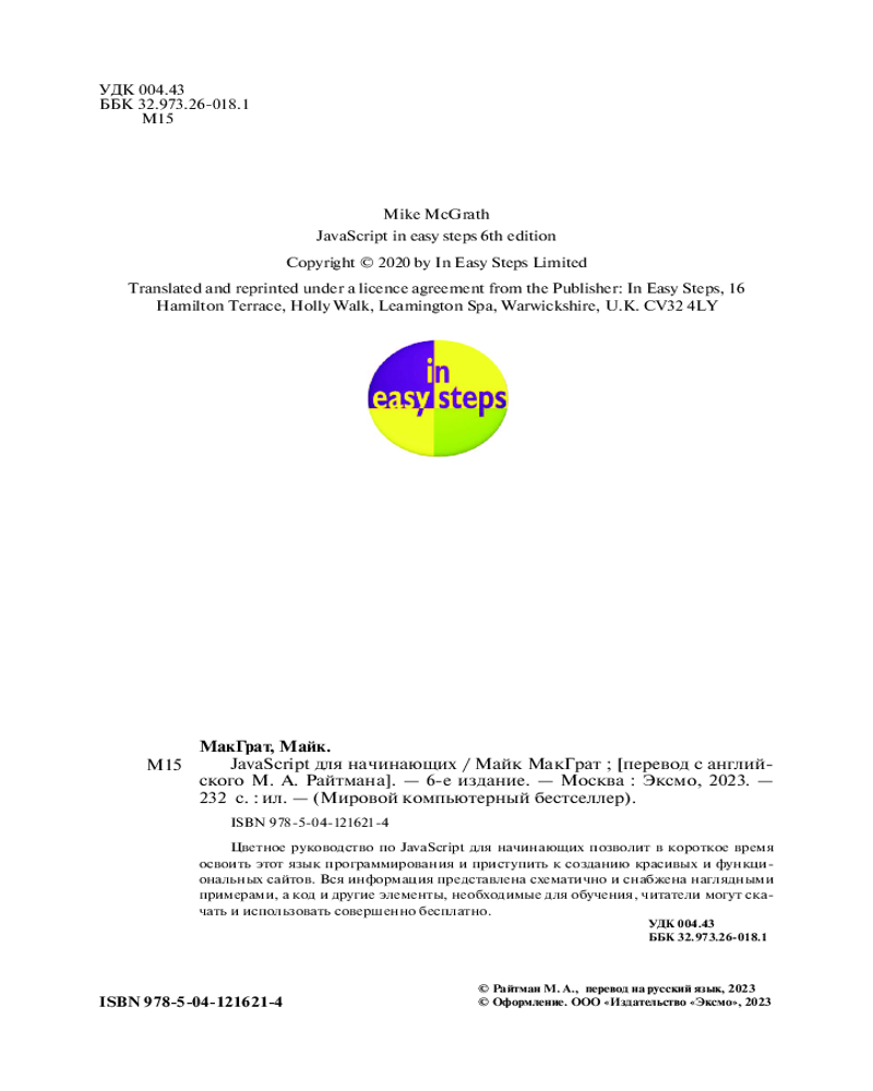 Серия: Мировой компьютерный бестселлер (обложка) Начните программировать на JavaScript и создайте красивый и функциональный сайт своими руками прямо сейчас! |