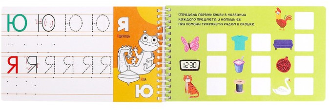• 2 пластиковых трафарета прикреплены к пружинке. Их можно аккуратно отстегнуть и использовать отдельно от прописей. |