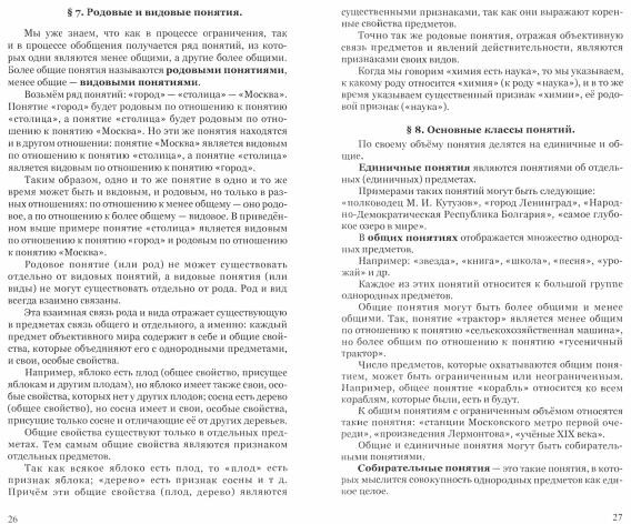 Благодаря учебнику, школьники знакомятся с основами логики, логическими приемам Логике, как и остальным точным наукам, во времена Советского союза уделялось особое внимание. Государству нужны были инженеры и экономисты, поэтому дисциплина являлась одной из самых важных в системе образования, наряду с математикой и экономикой. Учебник по логике 1954 года выпуска разрабатывался уважаемыми учеными и строго контролировался государством. Пособие получилось качественным, наполненным информацией. Школьники получали энциклопедические знания по логике, которые могли применить на практике. 8-е издание. |