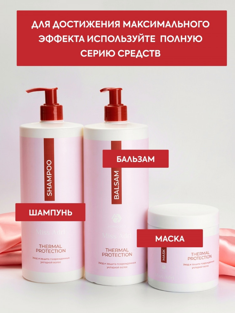 Серия: Miss Adri Термозащитная маска Miss Adri Thermal protection для всех типов волос. Активные ингредиенты состава мягко обволакивают каждую прядь, защищая волосы от негативного воздействия. Аргановое масло насыщает локоны питательными элементами, уменьшая их ломкость и сечение. Маска оберегает волосы от воздействия при укладке феном и щипцами, защищая каждую прядь от перегрева. |