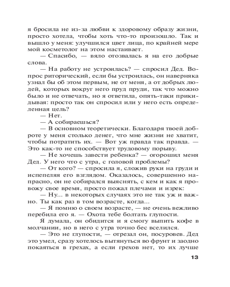 Большой секс в маленьком городеВ данный момент этот товар отсутствует в продаже. Возможно, у нас найдется аналогичный или похожий товар здесь. Серия: Авантюрный детектив (новая суперэконом-серия) (обложка) Не очень-то приятно обнаружить в багажнике собственного автомобиля труп. Впрочем, Ольгу Рязанцеву таким сюрпризом не удивишь. С тех пор как она взялась за поиски пропавшей девочки, трупы стали ей попадаться с удручающей монотонностью. Однажды так целых три, — аккуратно закатанные в бетон. В конце концов она выяснила, кто в городе любит игры с садистским уклоном. Но прямых улик нет. Значит, их надо добыть во что бы то ни стало. И Ольга едет в подозрительное местечко, где ей назначил встречу какой-то незнакомец... |