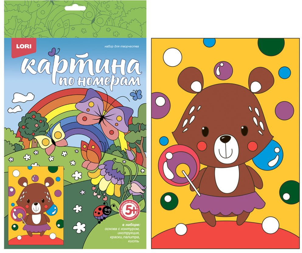 Картины по номерам для самых маленьких. В набор входит картонная основа с нанесенным контуром сюжета, акриловые краски и все необходимое для создания шедевра. В процессе рисования развивается мелкая моторика, воображение и фантазия у ребенка.