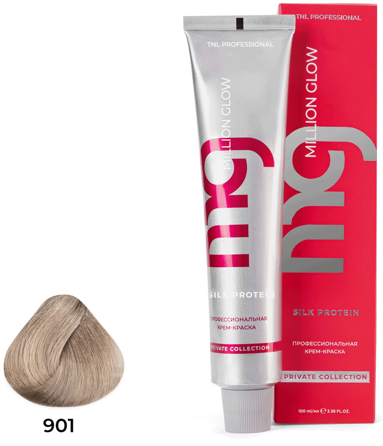 TNL Professional Крем-краска для волос с протеинами шёлка, оттенок 901 Осветляющий пепельный