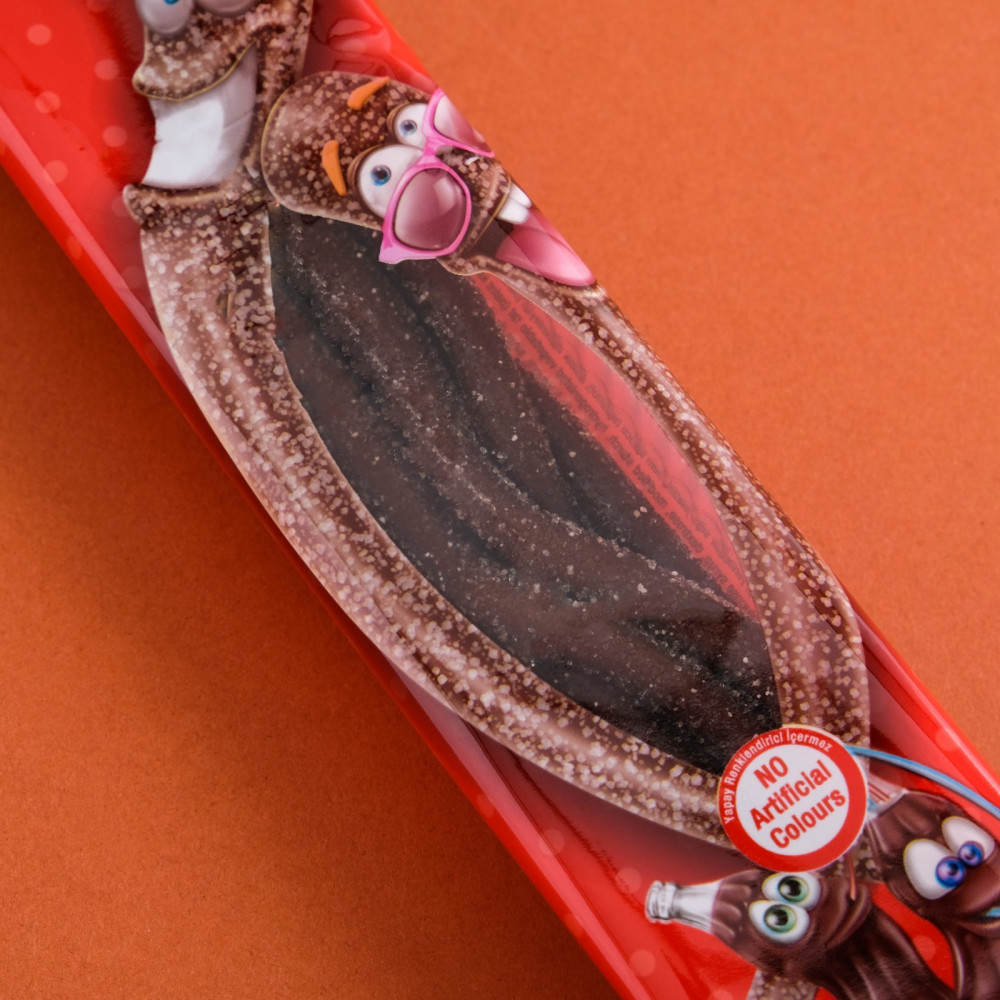 Сахар, сироп глюкозы, пшеничная мука, растительный жир (пальма), кукурузный крахмал, увлажнитель (сорбитол), регулятор кислотности (лимонная кислота, яблочная кислота, винная кислота, фумаровая кислота, натрий бикарбонат, трицитрат натрия), декстроза, загуститель (гуммиарабик), краситель (карамель), ароматизатор (кола, ваниль), эмульгаторы (моно- и диглицериды растительных жирных кислот).