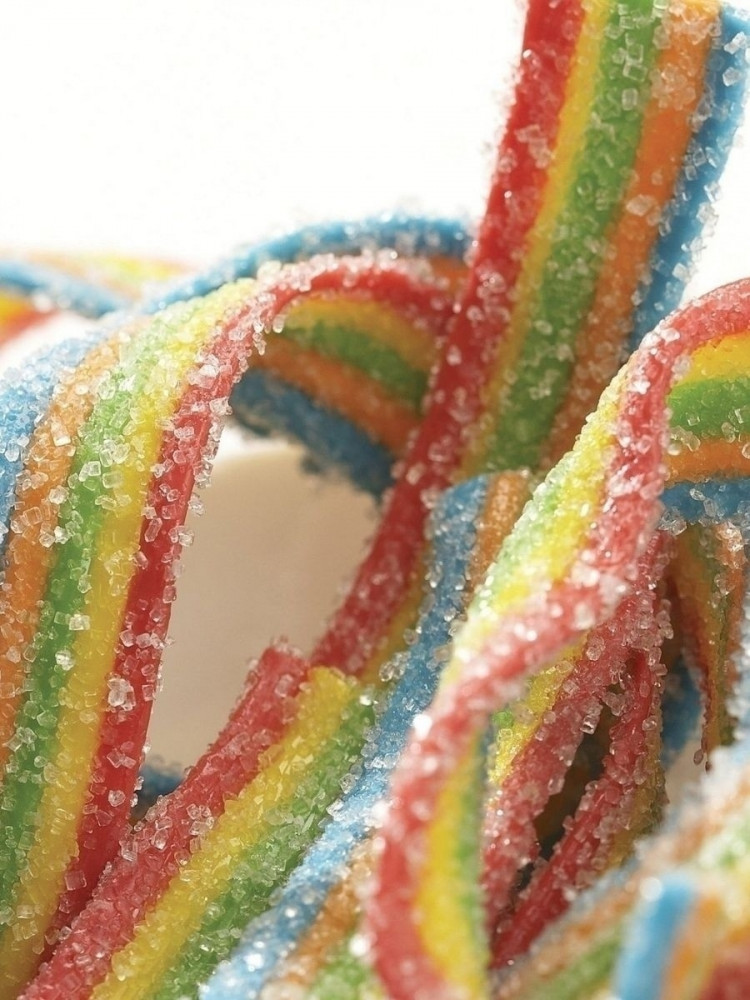 Сахар, глюкозный сироп, кукурузный крахмал, инвертный сахарный сироп, пшеничный крахмал (содержит глютен), пшеничная мука, кислоты: яблочная кислота, растительный жир, увлажнитель: глицерин, кислоты: лимонная кислота, ароматизаторы, регулятор кислотности: цитрат калия; эмульгатор: глицерилмоностеарат; соль, концентрат растительный: смородина, морковь, красители: E100, E120, E133, E171.