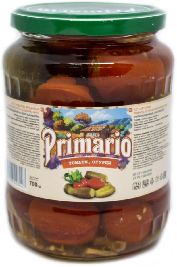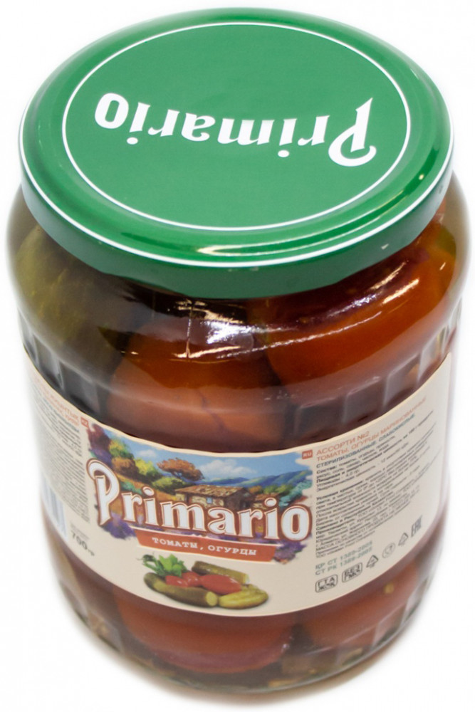 Томаты, огурцы, специи, уксус, соль, сахар, чеснок, вода.