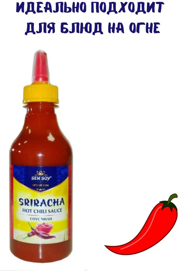 Острый чили соус Sriracha («Чили Шрирача») — фаворит тайской, вьетнамской и мексиканской кухни, отличный компонент для блюд, приготовленных на огне (барбекю) и картофеля фри, для обжарки сыра тофу, куриных крылышек, морепродуктов. Острый чили соус Sriracha можно использовать как соус для макания и приготовления и можно добавлять при мариновании, например при приготовлении капусты по-корейски. Соус оценят не только поклонники экзотической азиатской кухни, но также почитатели мексиканской и кавказской кухни. Острый чили соус Sriracha подходит также для приготовления некоторых коктейлей.  |