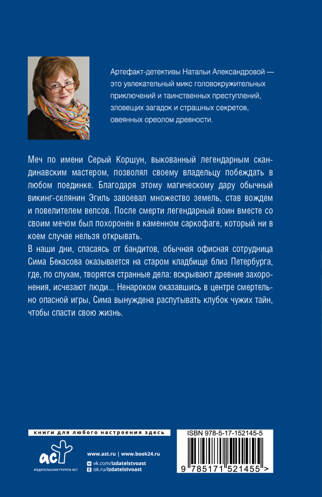 Проклятие призрачного воинаНаталья Николаевна Александрова В данный момент этот товар отсутствует в продаже. Возможно, у нас найдется аналогичный или похожий товар здесь. Серия: Роковой артефакт (м) Меч по имени Серый Коршун, выкованный легендарным скандинавским мастером, позволял своему владельцу побеждать в любом поединке. Благодаря этому магическому дару обычный викинг-селянин Эгиль завоевал множество земель, став вождем и повелителем вепсов. После смерти легендарный воин вместе со своим мечом был похоронен в каменном саркофаге, который ни в коем случае нельзя открывать. |