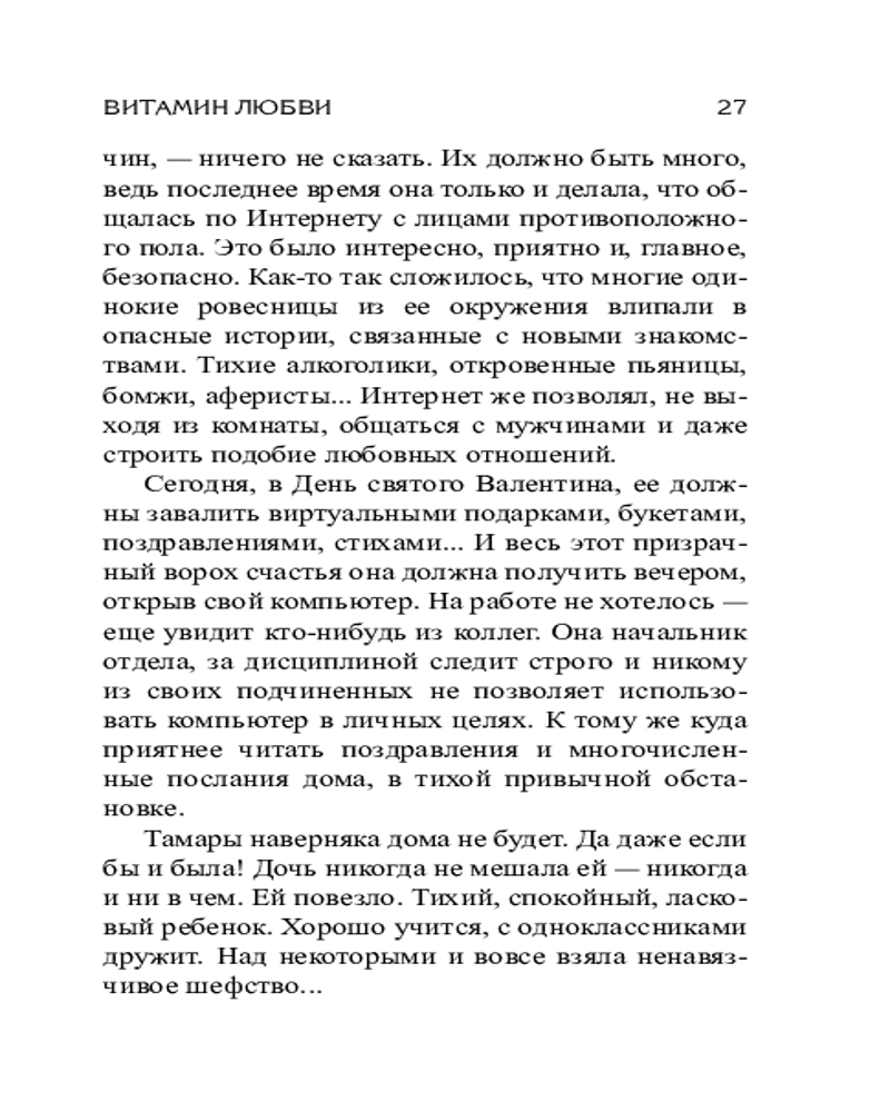 Витамин любвиВ данный момент этот товар отсутствует в продаже. Возможно, у нас найдется аналогичный или похожий товар здесь. Серия: Эффект мотылька. Детективы Анны Даниловой. Новое оформление (обложка) Она привыкла влюблять, покорять, восхищать. Мужское сердце для Милы трофей, которым она не слишком дорожит: завоевывает, использует, потом легко бросает. В сердечных делах ей даже интереснее одерживать верх над соперницами, ведь просто любить скучно. Неужели ни одна из них не готова отомстить? Или мстить должны те, кого она шутки ради успевает назвать виновными в своей смерти перед тем, как исчезнуть?.. |