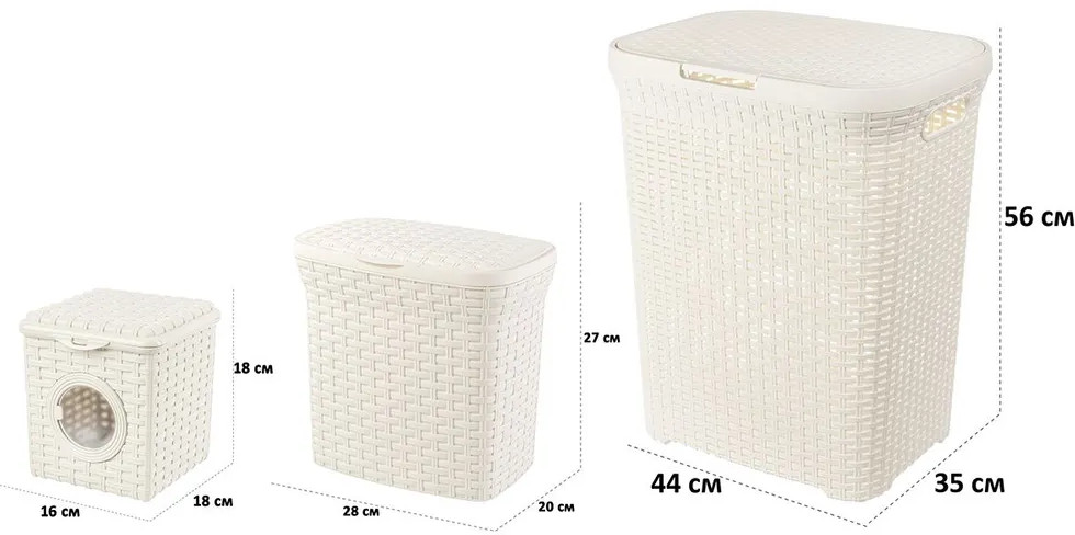 💳 Оплатить за товар можно при получении 🇰🇿 Есть бесплатная доставка по Казахстану 🎁 Копите бонусы с каждой покупки Серия: Ротанг Набор серии «Ротанг» состоит из 3-х предметов: корзина для белья угловая на 60 литров, контейнер для стирального порошка на 10 литров и контейнер для мелочей на 3 литра. Хозяйственные контейнеры помогут навести чистоту и порядок в ванной комнате. Выполнены из пластика. Бельевая корзина имеет отверстия для циркуляции воздуха и крышку с ручкой. Не боится воды, проветривается и препятствует появлению повышенной влажности внутри. Пластиковая корзина для грязных вещей и одежды удобно дополнит вашу ванну. Также универсальную бельевую корзинку можно использовать в детской комнате для игрушек или на кухне. Такой набор станет удобным и эстетичным дополнением в вашей ванной комнате! |