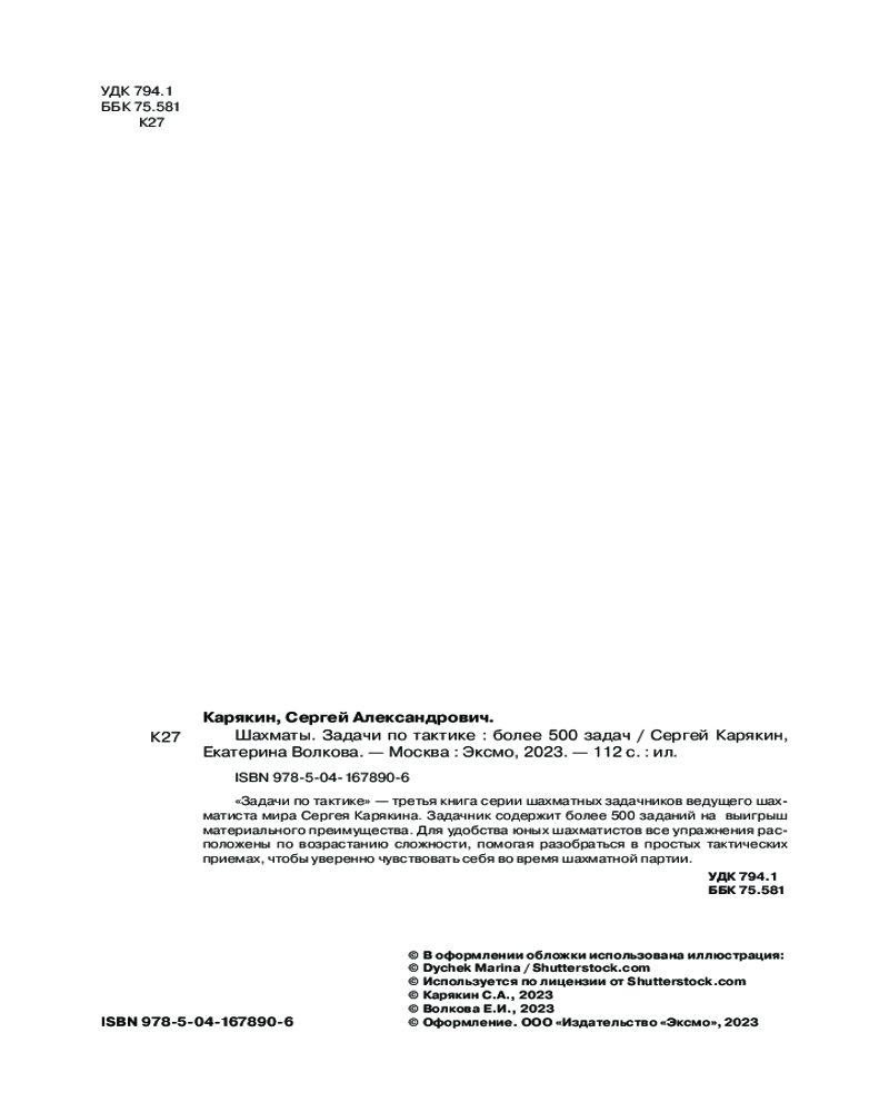 Шахматы. Задачи по тактике. Более 500 задачЕкатерина Игоревна Волкова, Сергей Александрович Карякин -20% +139