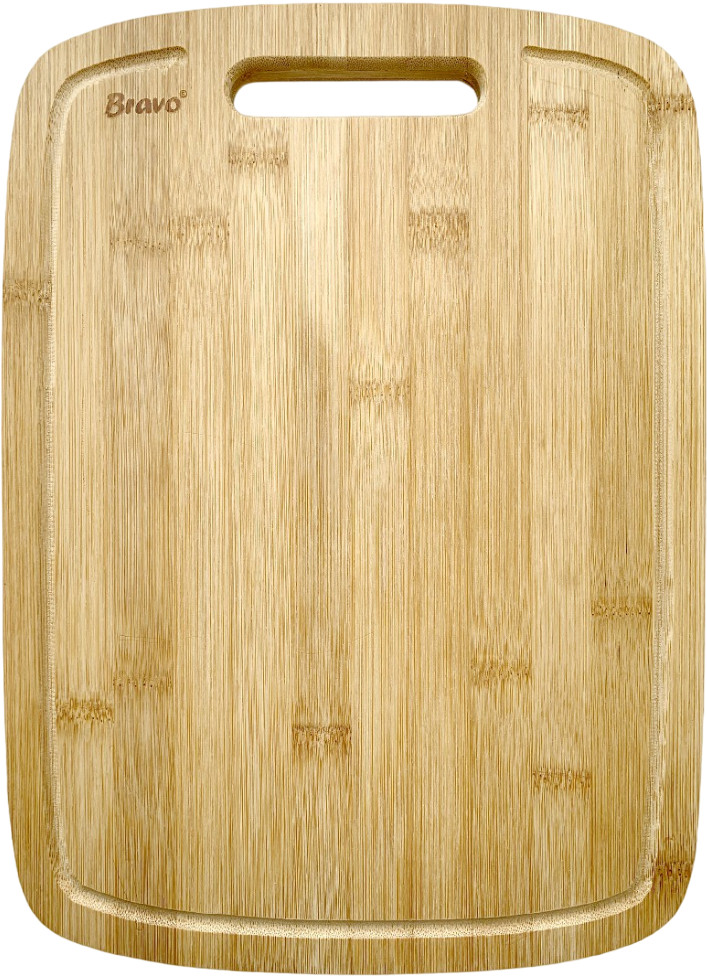 Разделочная доска имеет вырезную ручку, удобную для переноски, а также желобок вдоль края, который не даст жидкости стекать с доски. Бамбук считается экологичным, антисептическим, гигиеничным, долговечным и не впитывающим влагу материалом, поэтому разделочная доска из бамбука отлично подойдет для обработки и нарезки мяса, рыбы, хлебобулочных изделий, овощей, зелени и прочих продуктов. Доска устойчива к механическим нагрузкам и не тупит нож. Кроме того, разделочная доска из бамбука отлично впишется в интерьер любой кухни.