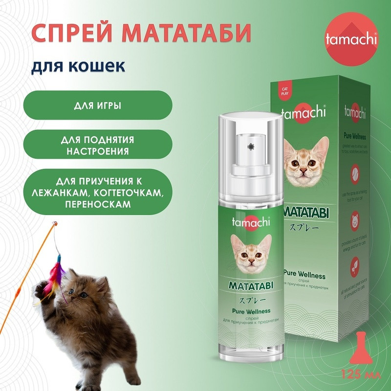 Tamachi Pet Company Спрей для приучения к предметам «Мататаби»В данный момент этот товар отсутствует в продаже. Возможно, у нас найдется аналогичный или похожий товар здесь. Спрей «Мататаби» — универсальное средство для продолжительных игр и поднятия настроения кошки. Не вызывает перевозбуждения нервной системы и повышенной агрессивности. Подходит для приучения к когтеточкам, лежанкам и переноскам. Снимает стресс, повышает психоэмоциональный и физический тонус питомца. Так же способствует решению проблемы ожирения кошек, стимулируя их к активным играм. |