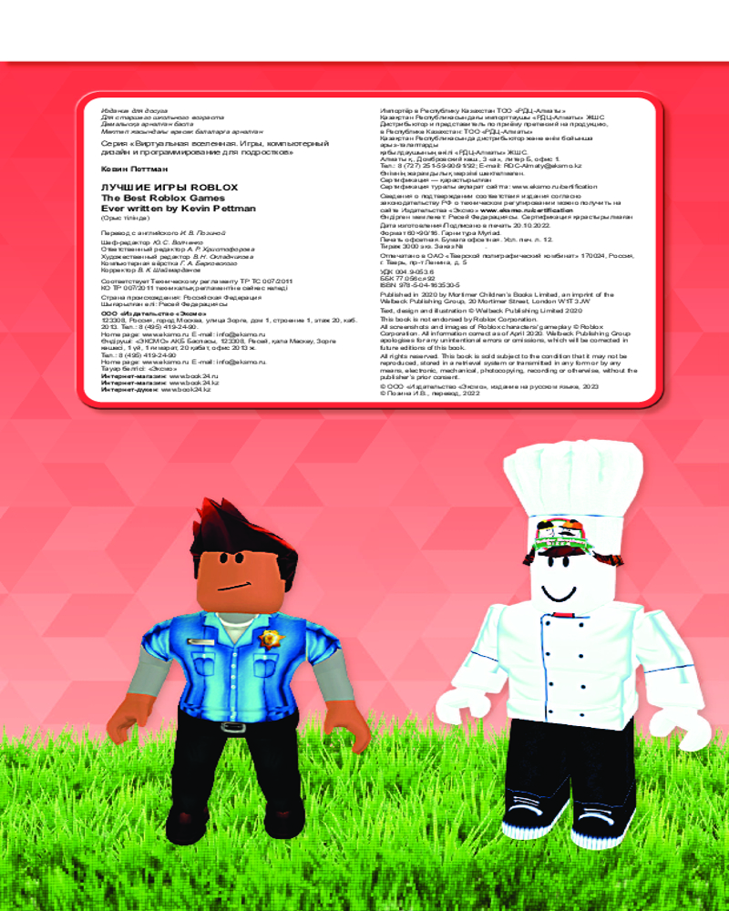Лучшие игры RobloxВ данный момент этот товар отсутствует в продаже. Возможно, у нас найдется аналогичный или похожий товар здесь. Серия: Виртуальная вселенная. Игры, компьютерный дизайн и программирование для подростков В Roblox есть тысячи игр, и эта книга расскажет тебе, какие из них самые лучшие. Независимо от того, новичок ты в Roblox или опытный ветеран, тебе понадобится это важное независимое руководство. |