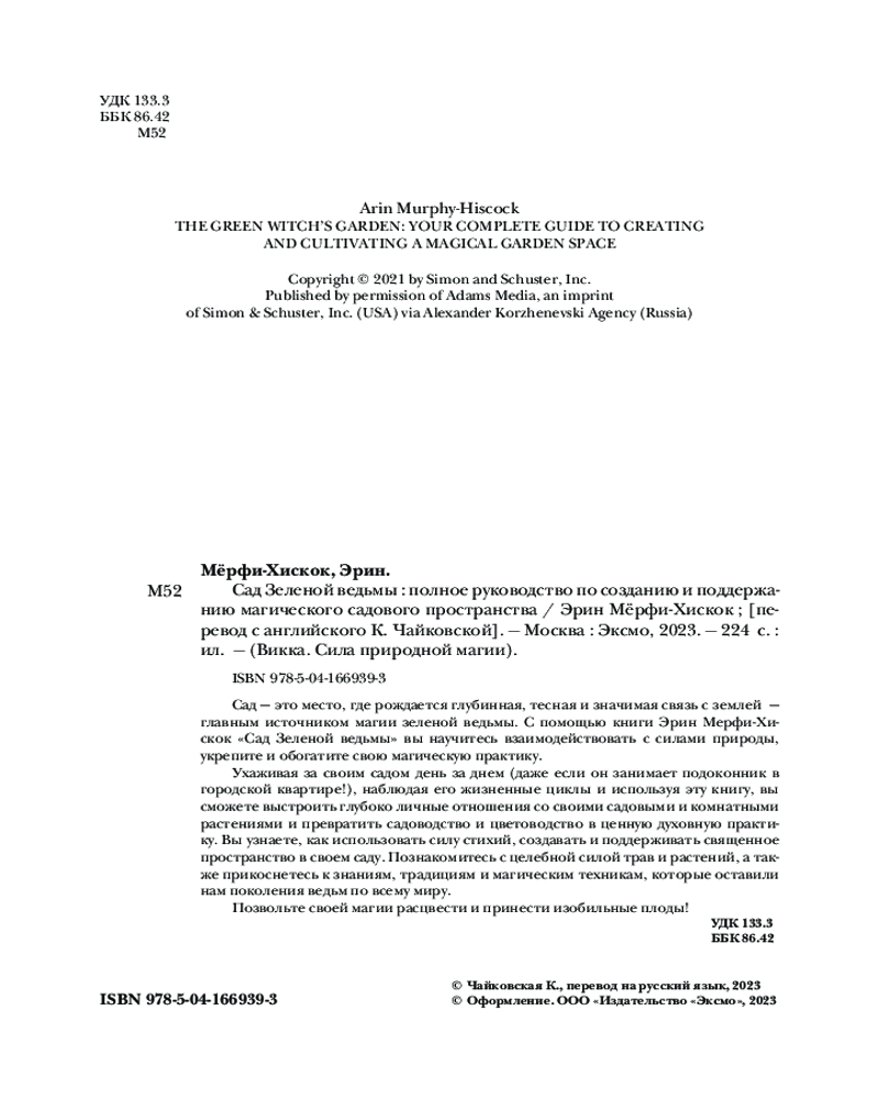 Серия: Викка. Сила природной магии Сад — это место, где рождается глубинная, тесная и значимая связь с землей — главным источником магии зеленой ведьмы. С помощью книги Эрин Мёрфи-Хискок «Сад зеленой ведьмы» вы узнаете, как научиться взаимодействовать с силами природы, укрепить и обогатить свою магическую практику. |