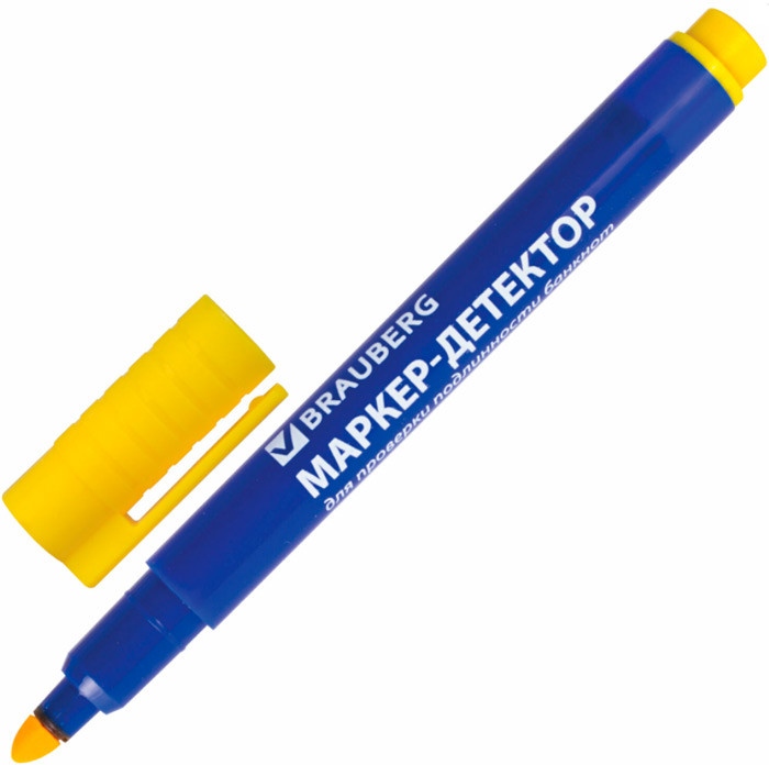 Маркер-детектор предназначен для быстрой проверки подлинности банкнот. Используется как работниками в финансовой сфере, так и обычными людьми, которые периодически снимают деньги с банкоматов. Реагирует на химический состав краски и бумаги банкнот. Работает с большинством видов мировых валют: рубли, доллары, евро. Имеет круглый наконечник и увеличенный объем чернил. |