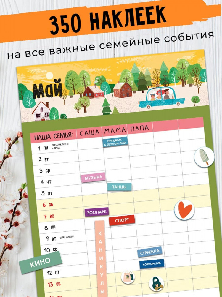 Семейный календарь с наклейками не только будет напоминать вам о предстоящих событиях, но и научит ответственности, планированию и грамотной организации свободного времени. |