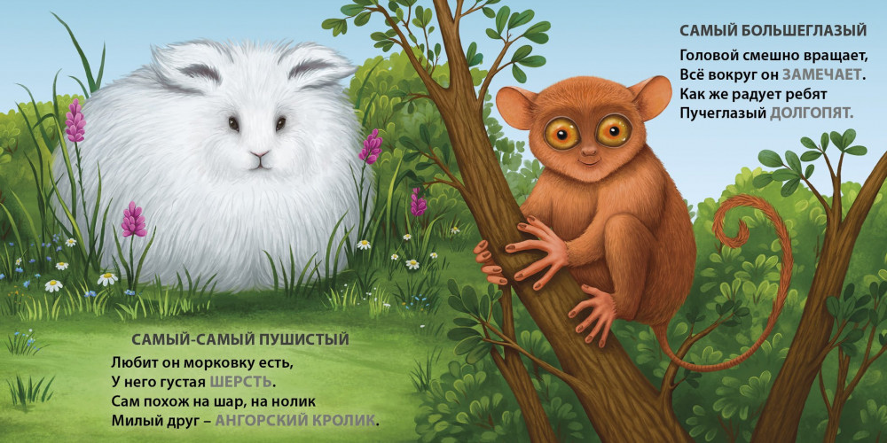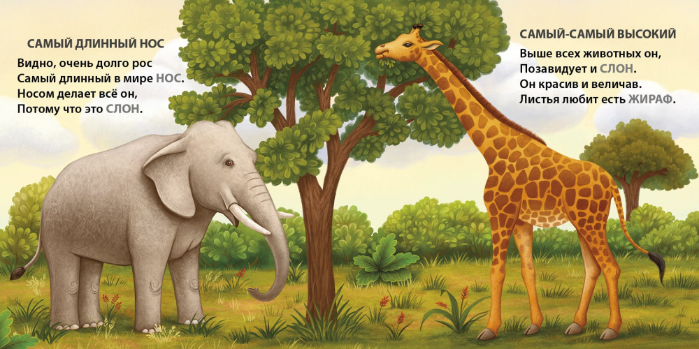 Серия: Книжки-картонки Книжка — картонка «Самые-самые животные» в стихах Евгения Сосновского познакомит вашего ребёнка с самыми необычными животными на нашей планете. Стихи написаны так, чтобы ребёнок смог сам срифмовать название животного или другие слова. |