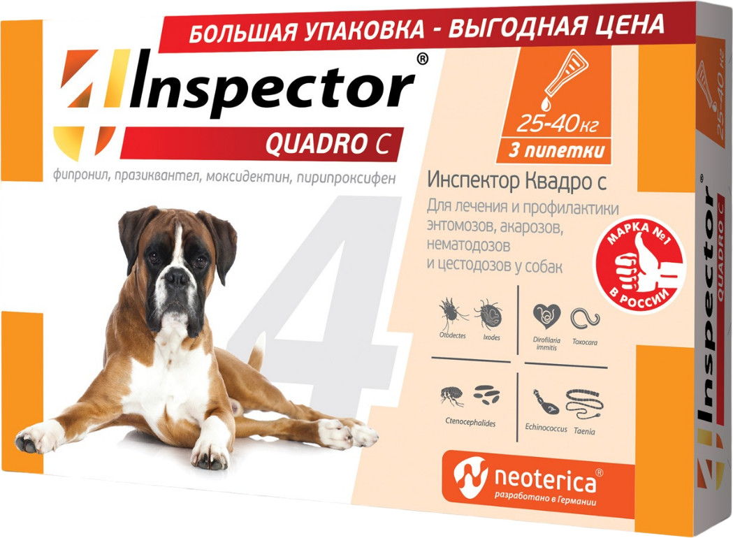 Inspector Капли на холку для собак от внешних и внутренних паразитов «Quadro С»-20%