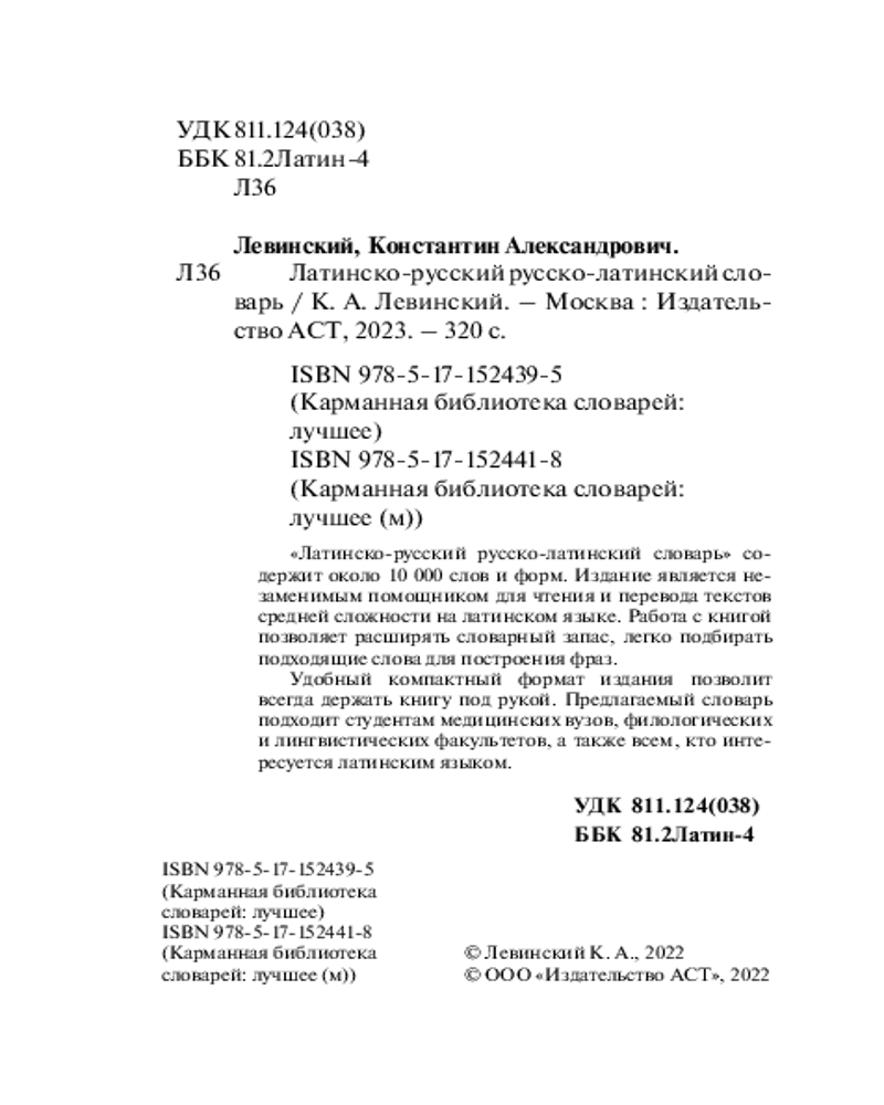 Латинско-русский русско-латинский словарьКонстантин Александрович Левинский