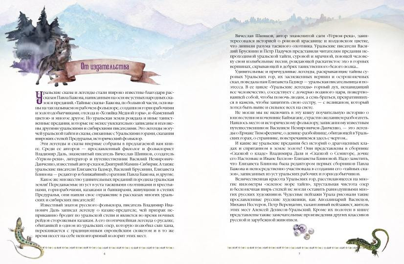 Серия: Сказки и мифы народов мира Уральские легенды и сказания стали широко известны благодаря «тайным сказам» Павла Бажова, основанным на фольклоре горнорабочих и золотодобытчиков (а большей частью — ставшим плодом фантазии великого сказочника). |