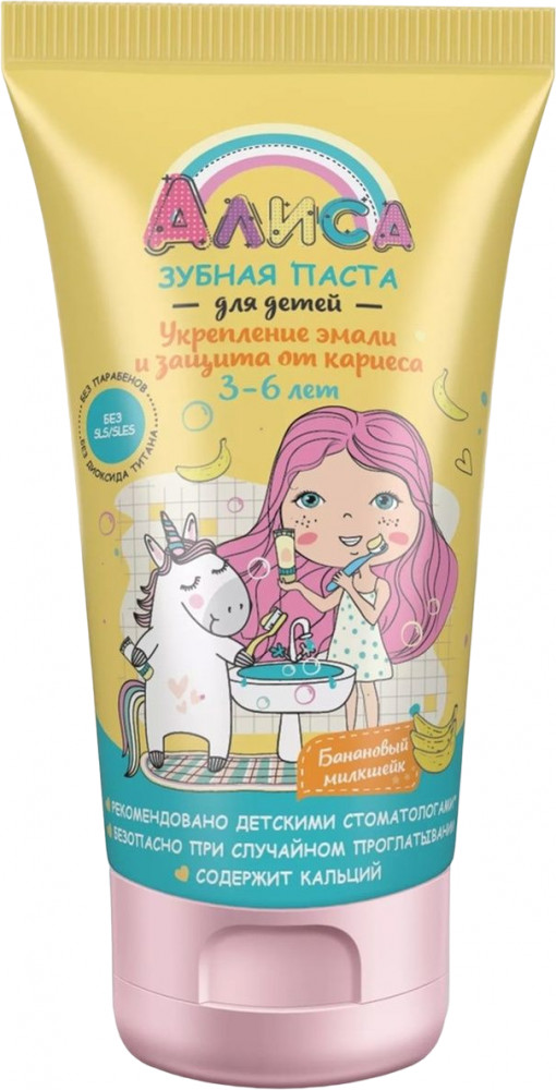 Зубная паста для детей «Алиса» предназначена для профилактики кариеса и укрепления дёсен у детей от 3 до 6 лет. Мягкая очищающая система позволяет бережно ухаживать за зубками, не повреждая структуру эмали молочных и первых постоянных зубов. Активные компоненты зубной пасты для детей, такие как лактат кальция, монофторфосфат натрия, бисаболол, коэнзим Q 10 бережно заботятся о здоровье полости рта, способствуют созданию благоприятных условий для здорового развития прорезающихся и сохранению постоянных зубов у детей от 3 до 6 лет. |